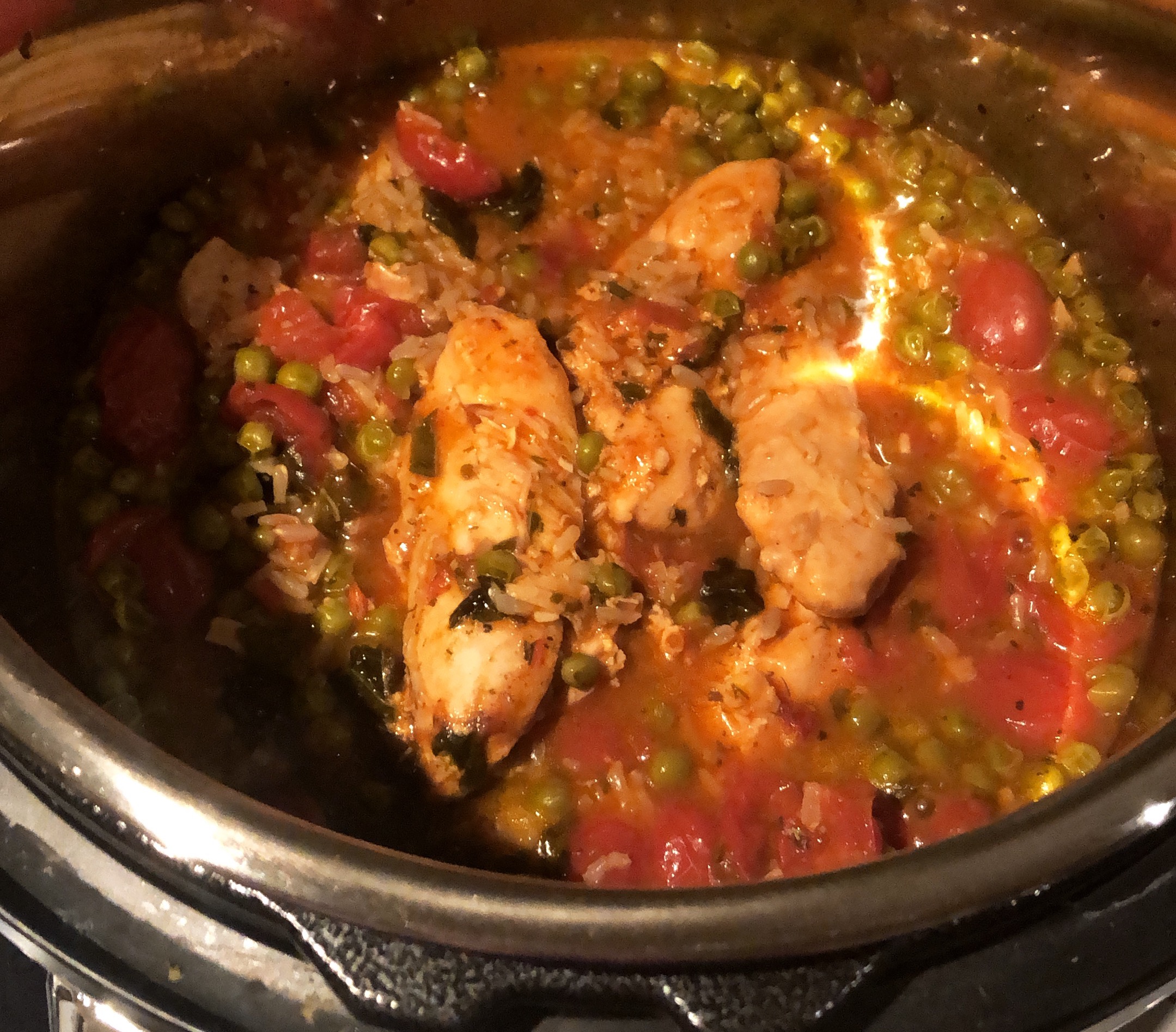 I’m currently in the “experimenting” phase of Instant Pot ownership, which means I’ve been throwing a lot of random things into the pot and crossing my fingers they’ll turn out edible! This night I landed on tomato-y rice with chicken, which was almost a mix between paella and risotto. And luckily it WAS edible, and pretty tasty too.