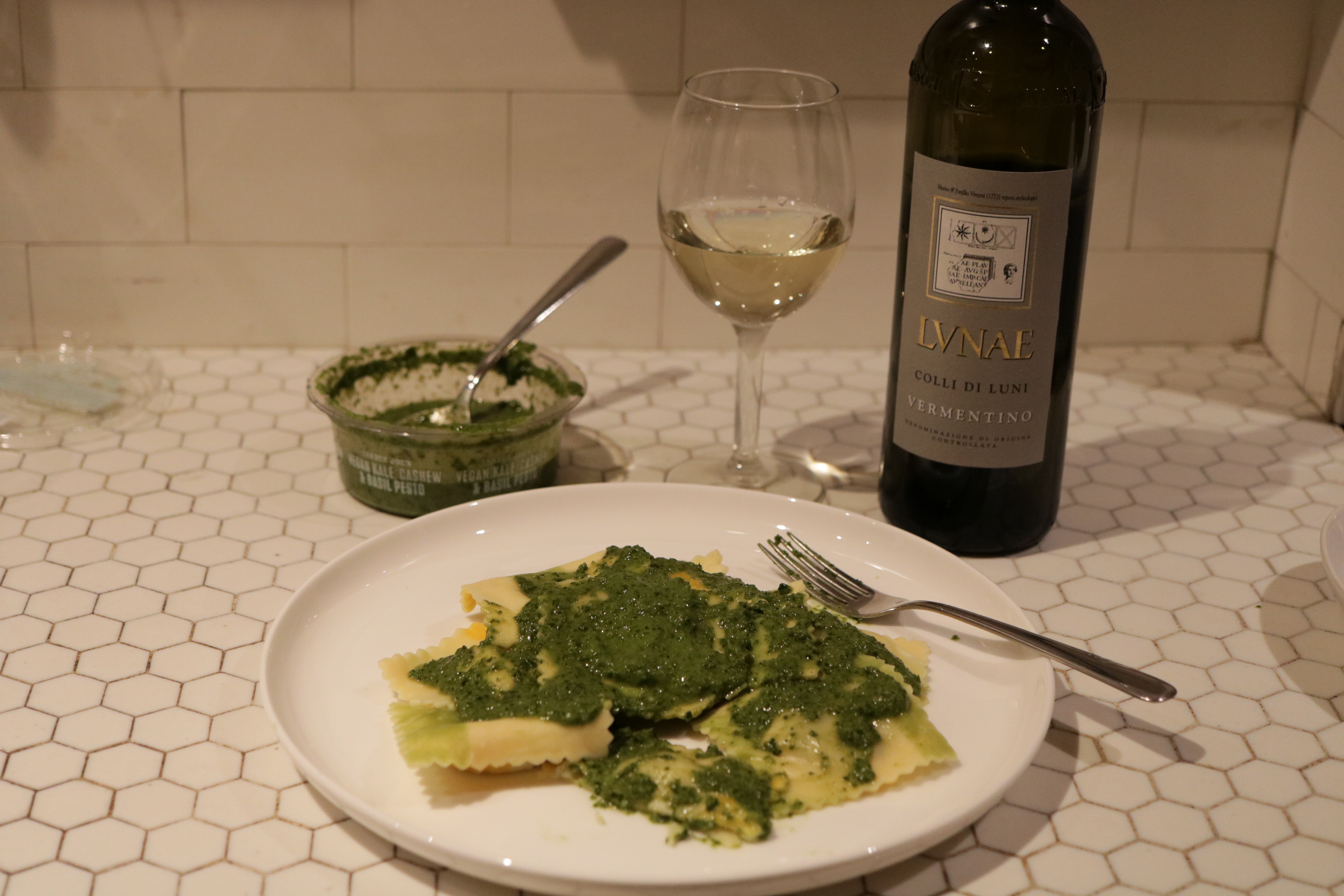 I’ve paired this wine with a few dishes, and my top recommendations so far are a veggie burrito bowl and ravioli with pesto sauce. But, I’m positive it would also be absolutely fantastic with salad and other types of lighter veggie dishes, too.