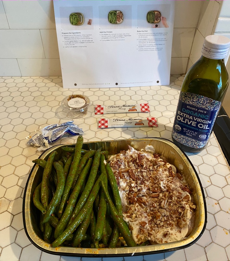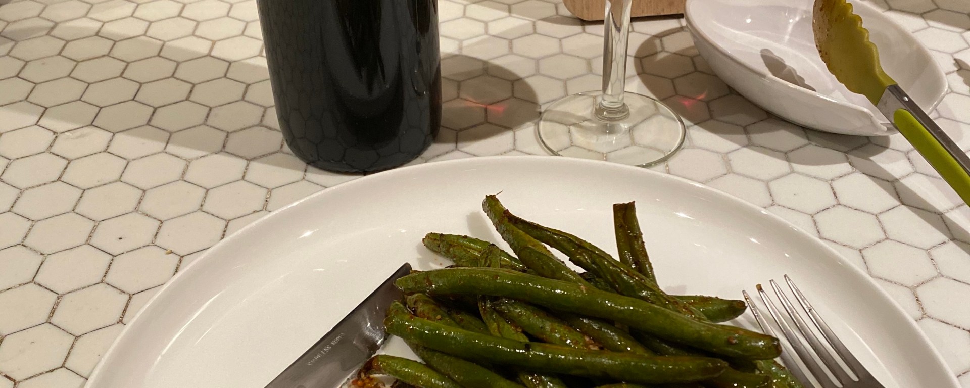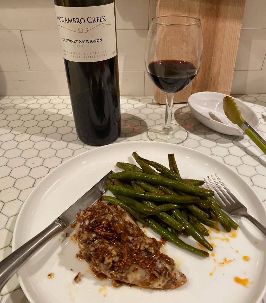 This Australian Cab has a whole lotta tannins and tart, cherry notes that get a boost from the wine’s high acidity. The tartness was actually a nice counterbalance to the sweet honey mustard on the chicken. The wine’s green veggie notes (bell pepper and mint) were a great complement to the green beans in the dish, too.