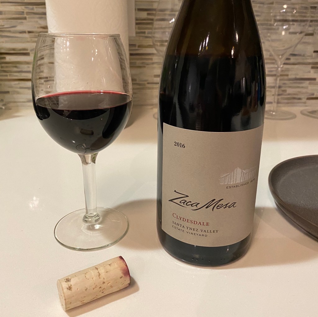 On my last visit, I brought home 2016 Zaca Mesa Clydesdale, which is 100% Syrah from their estate vineyards. In those Santa Ynez hills and valleys, it gets super hot during the summer days and cools off at night, producing wines bursting with ripe fruit notes and balanced by bright acidity.