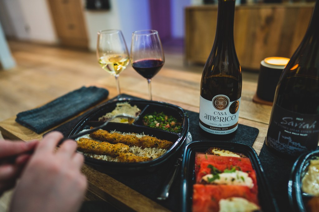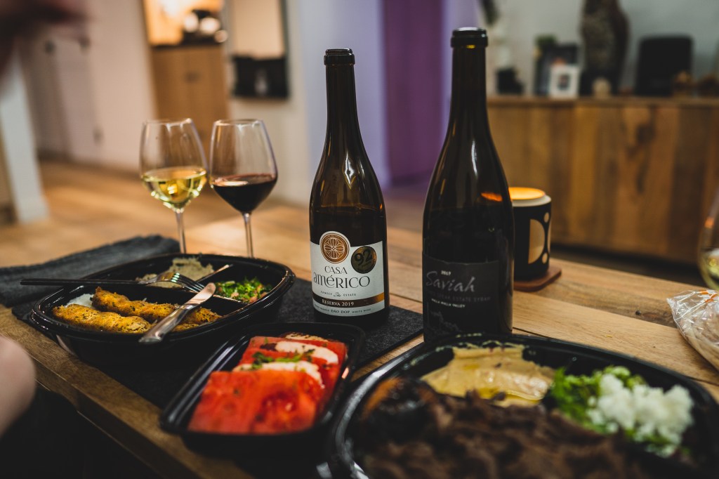 If you go with a red wine, try a dark, velvety option with smooth tannins, and chocolate and pepper notes. This type of wine helps bring out smokey flavors and seasonings in chicken or beef, and adds a lovely layer with garlicky flavors like the sauce and hummus.