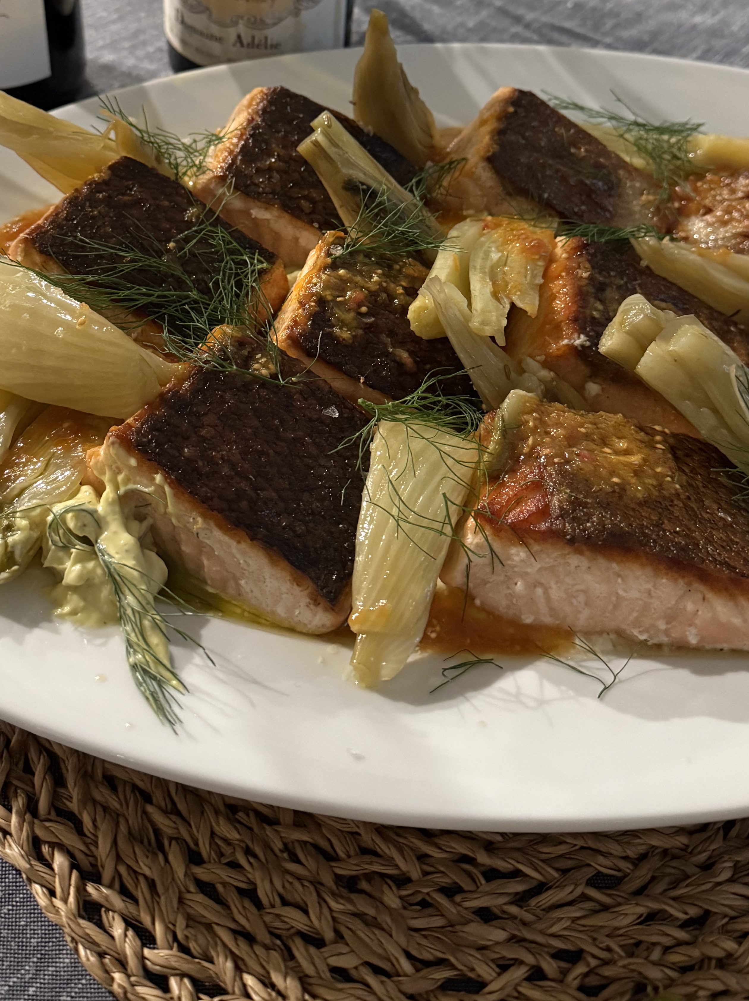 It’s fruity. It’s vibrant. It’s the perfect blend of cherry and chocolate and spice. And just divine with a rich cut of salmon. My hot take is that pinot noir and salmon is always the perfect pairing. Something about vibrant fruit notes and rich savory salmon just gets me. Try it, you’ll see.